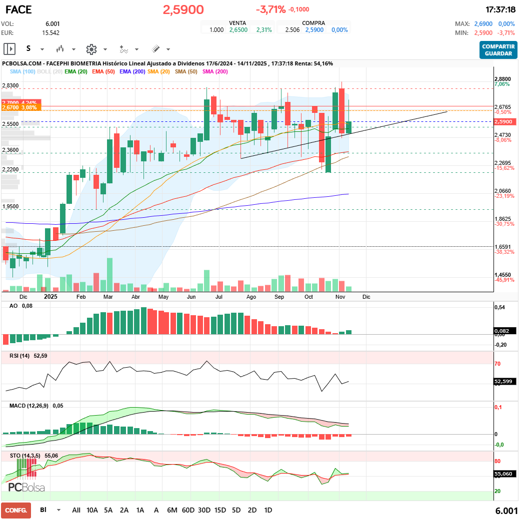 - (FACE) en Bolsa de Madrid -Del Día: viernes, 14 de noviembre de 2025