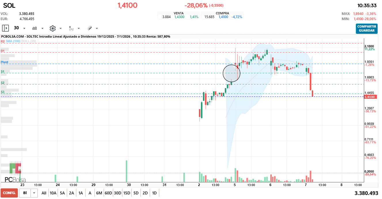 - (SOL) en Bolsa de Madrid -Del Día: miércoles, 7 de enero de 2026