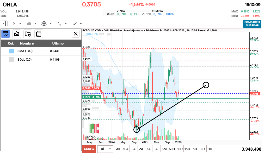 - (OHLA) en Bolsa de Madrid -Del Día: jueves, 8 de enero de 2026