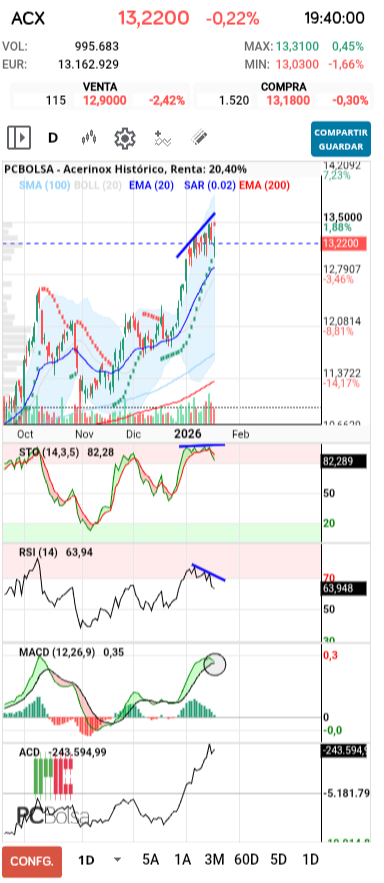 - (ACX) en Bolsa de Madrid -Del Día: lunes, 19 de enero de 2026
