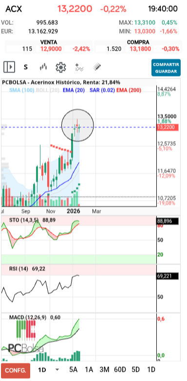 - (ACX) en Bolsa de Madrid -Del Día: lunes, 19 de enero de 2026