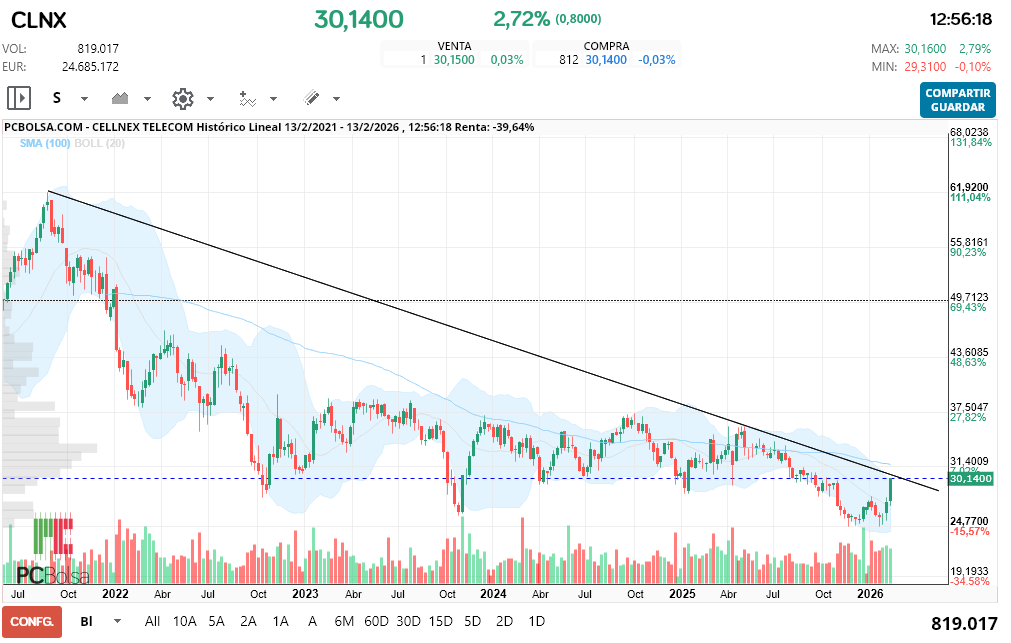 - (CLNX) en Bolsa de Madrid -Del Día: viernes, 13 de febrero de 2026