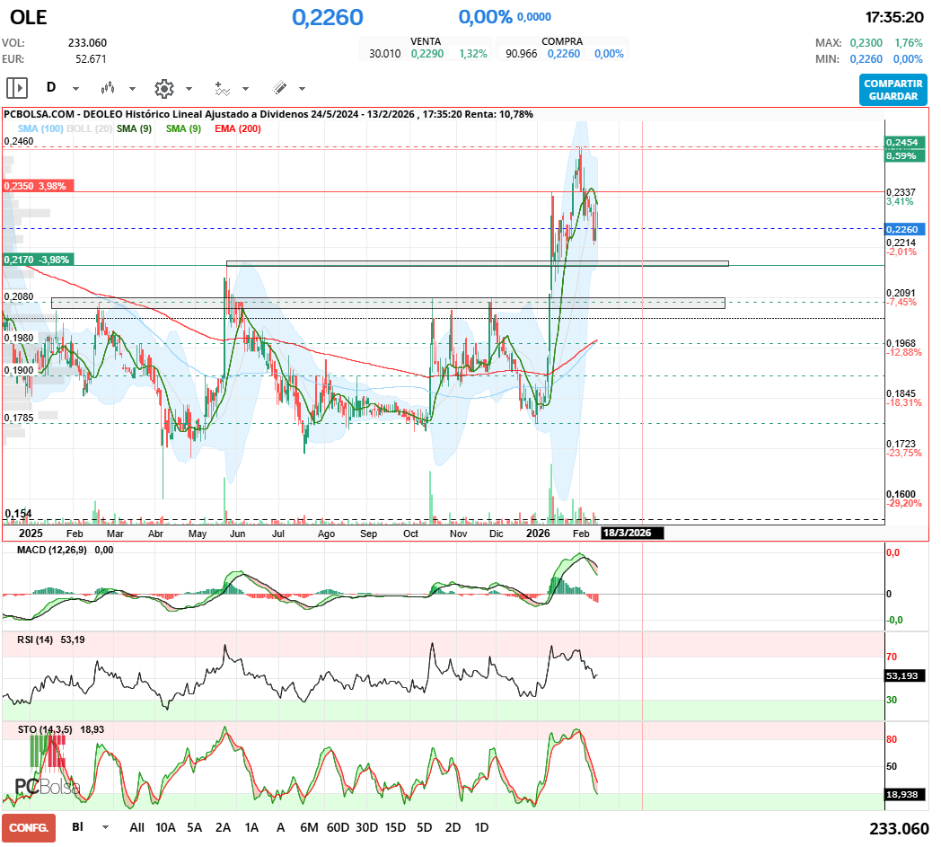 - (OLE) en Bolsa de Madrid -Del Día: sábado, 14 de febrero de 2026