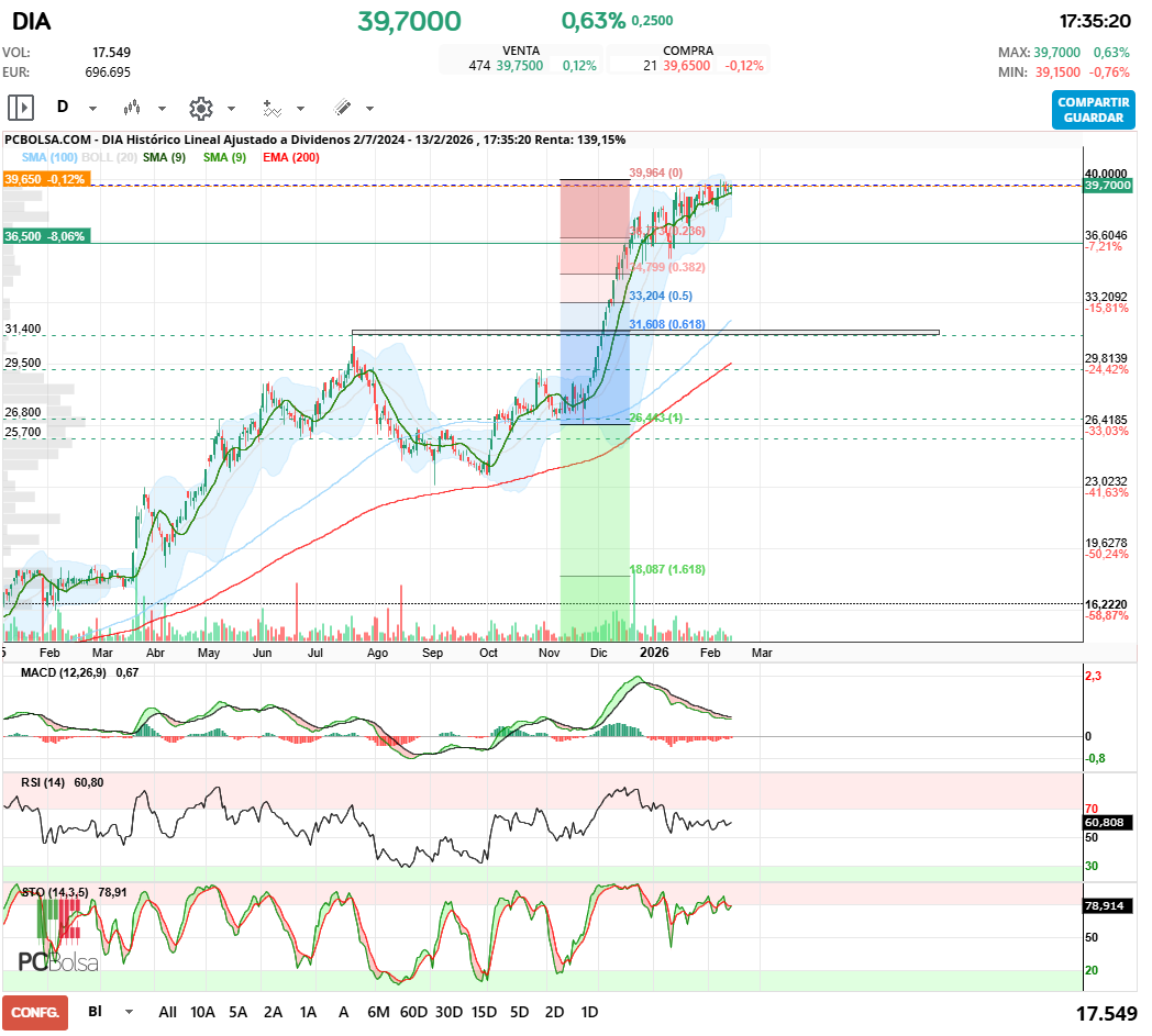 - (DIA) en Bolsa de Madrid -Del Día: sábado, 14 de febrero de 2026