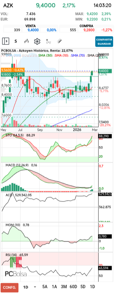 - (AZK) en Bolsa de Madrid -Del Día: lunes, 23 de febrero de 2026