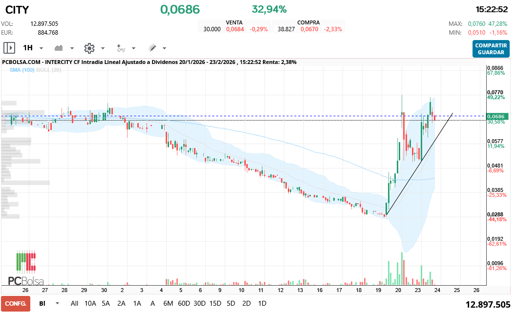 - (CITY) en Bolsa de Madrid -Del Día: lunes, 23 de febrero de 2026