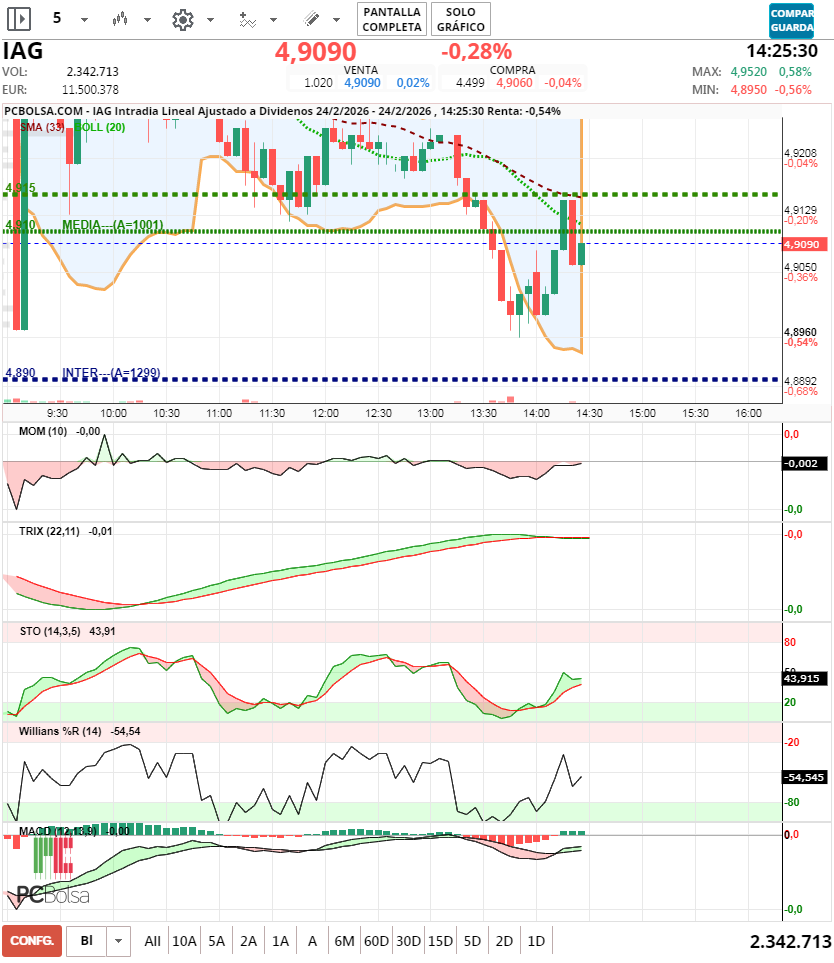 - (IAG) en Bolsa de Madrid -Del Día: martes, 24 de febrero de 2026
