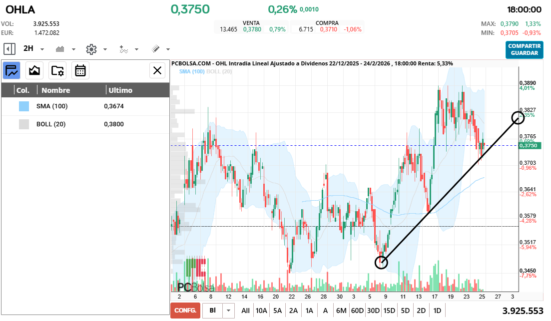 - (OHLA) en Bolsa de Madrid -Del Día: martes, 24 de febrero de 2026