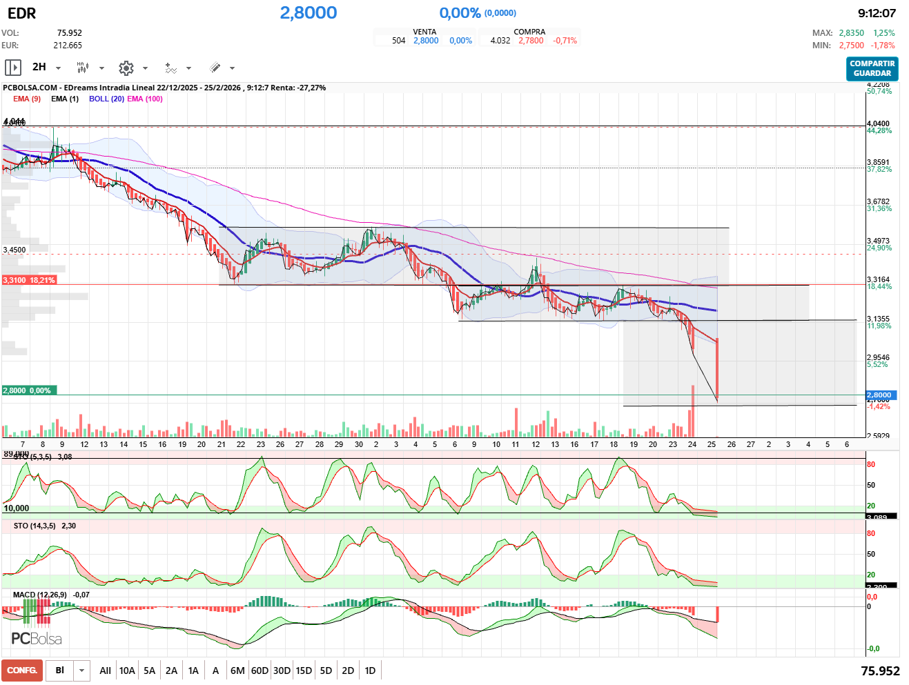 - (EDR) en Bolsa de Madrid -Del Día: miércoles, 25 de febrero de 2026
