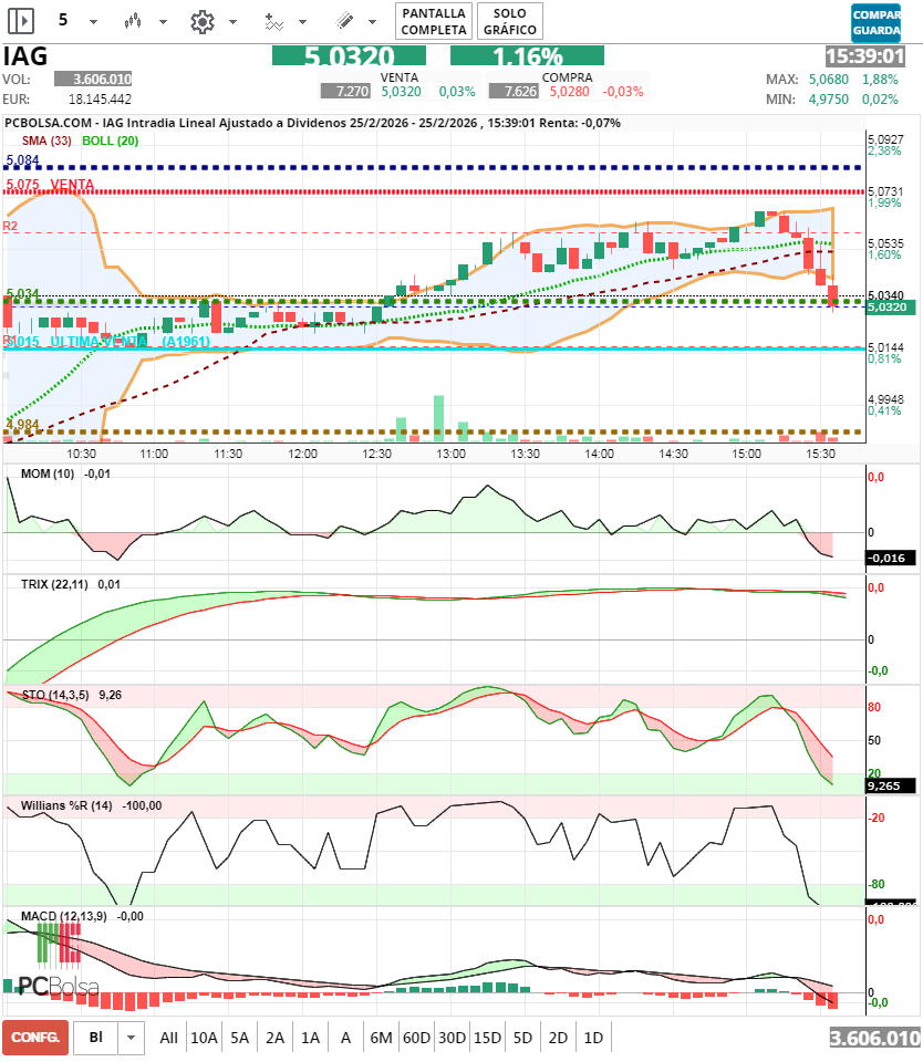 - (IAG) en Bolsa de Madrid -Del Día: miércoles, 25 de febrero de 2026
