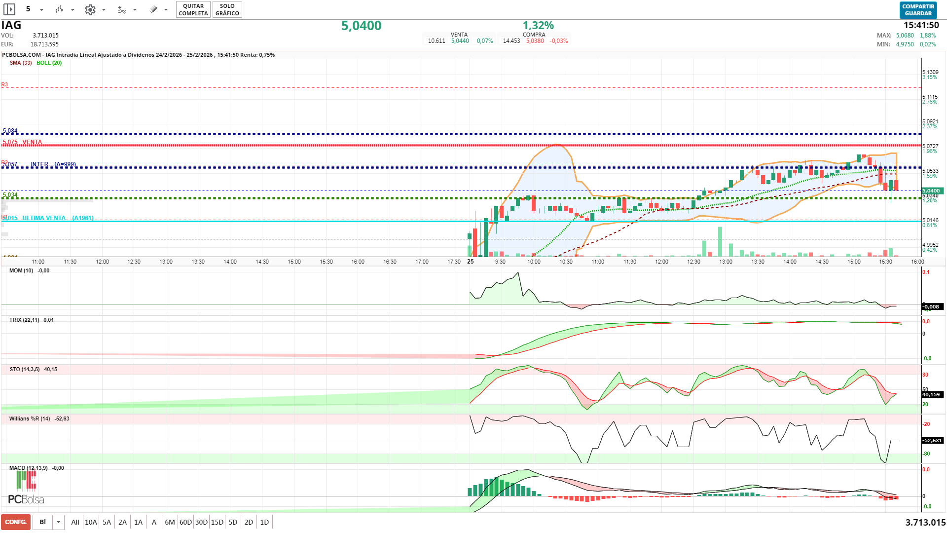 - (IAG) en Bolsa de Madrid -Del Día: miércoles, 25 de febrero de 2026