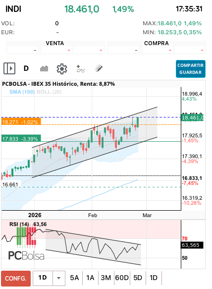 - (INDI) en Bolsa de Madrid -Del Día: miércoles, 25 de febrero de 2026