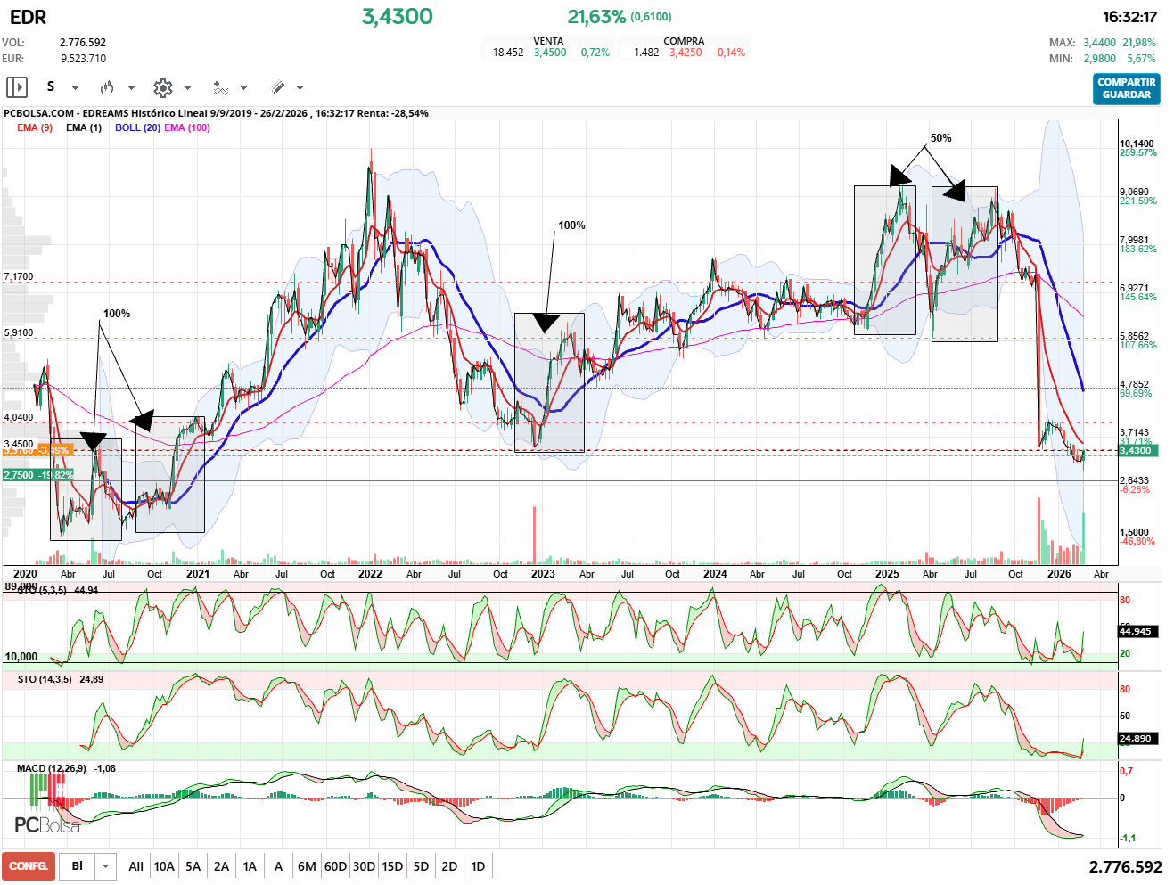 Estos gráficos se crean con la APLICACIÓN de PCBOLSA 3.0,pulsa aquí para entrar.