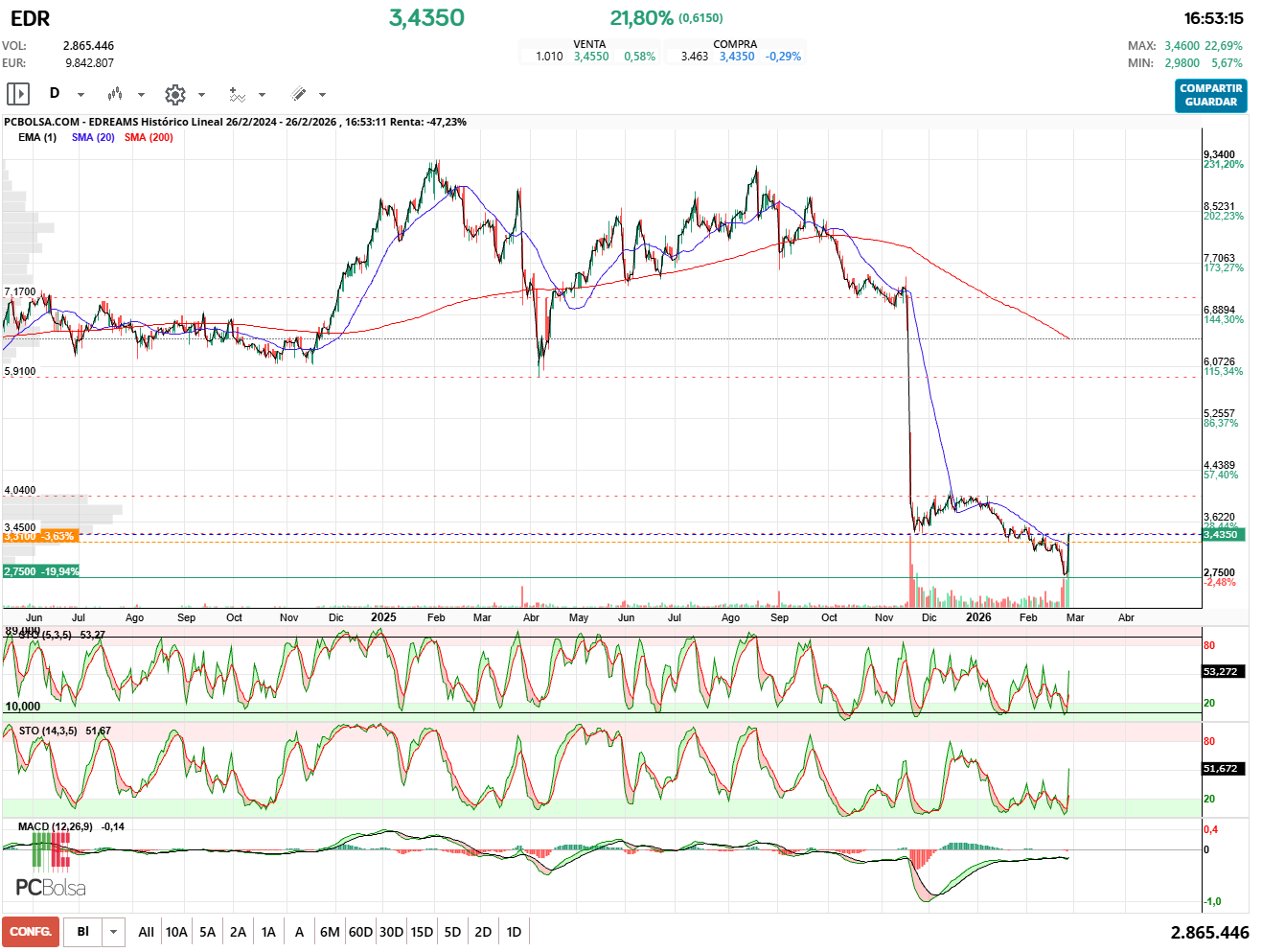 - (EDR) en Bolsa de Madrid -Del Día: jueves, 26 de febrero de 2026