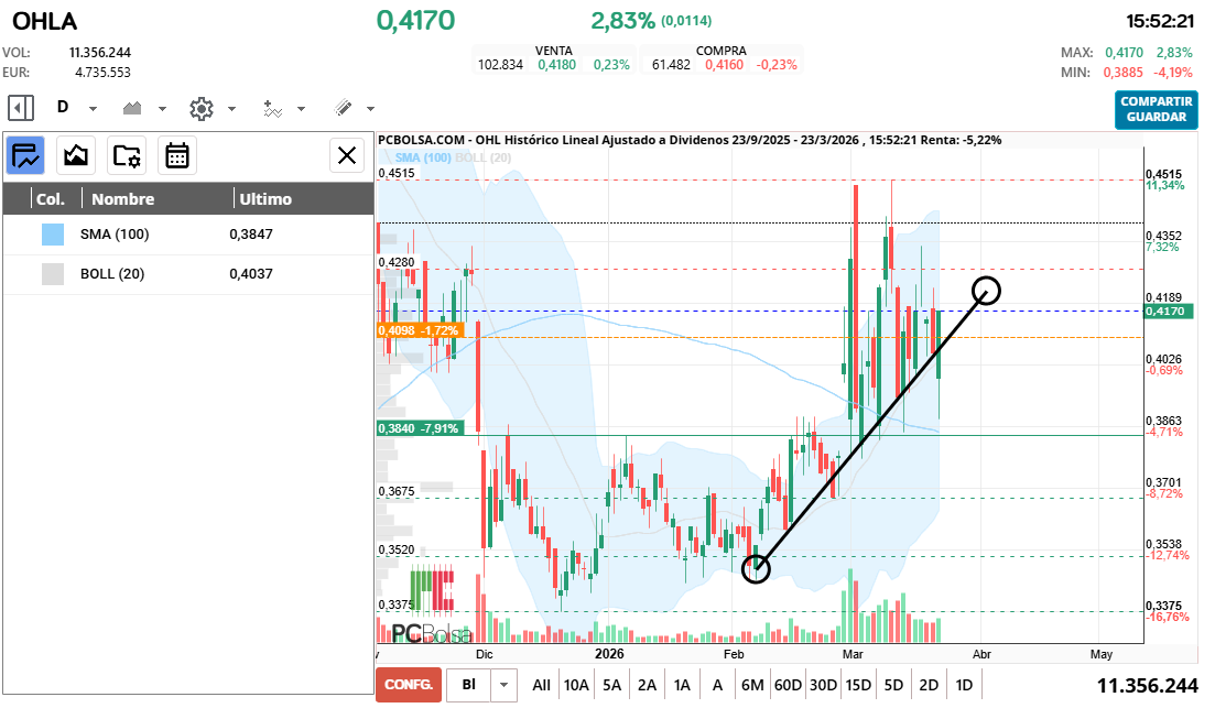 - (OHLA) en Bolsa de Madrid -Del Día: lunes, 23 de marzo de 2026