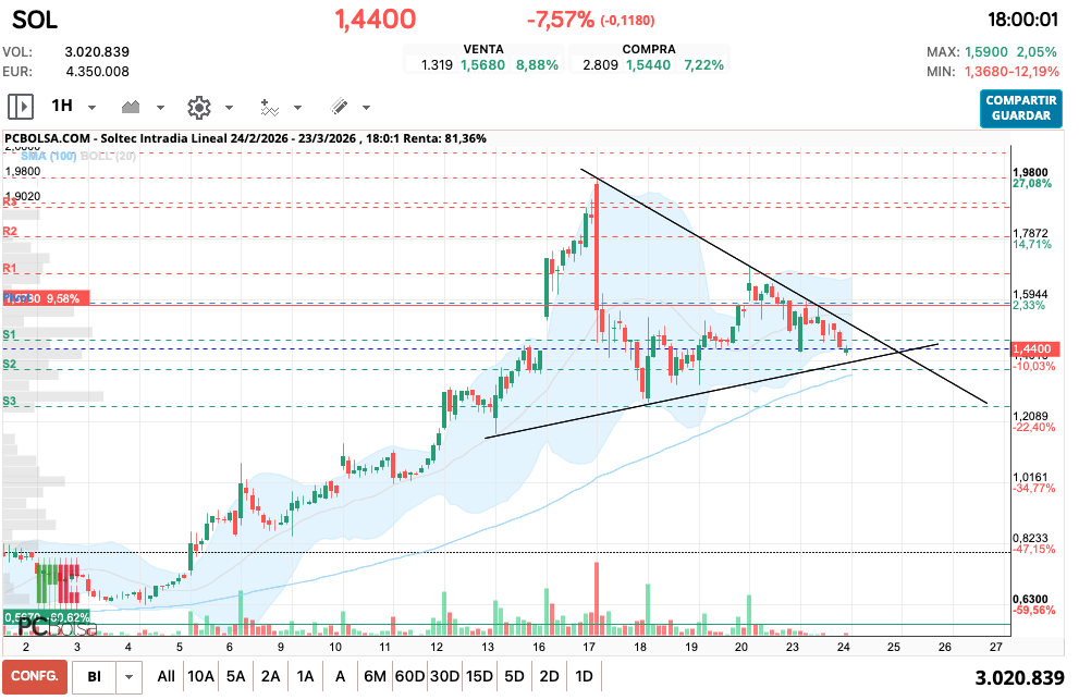- (SOL) en Bolsa de Madrid -Del Día: lunes, 23 de marzo de 2026
