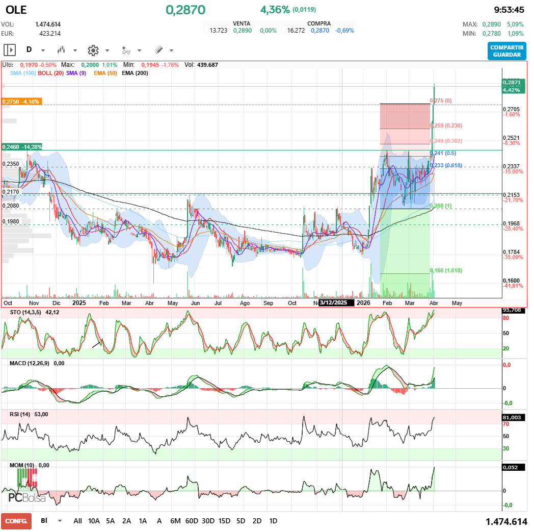 - (OLE) en Bolsa de Madrid -Del Día: jueves, 2 de abril de 2026