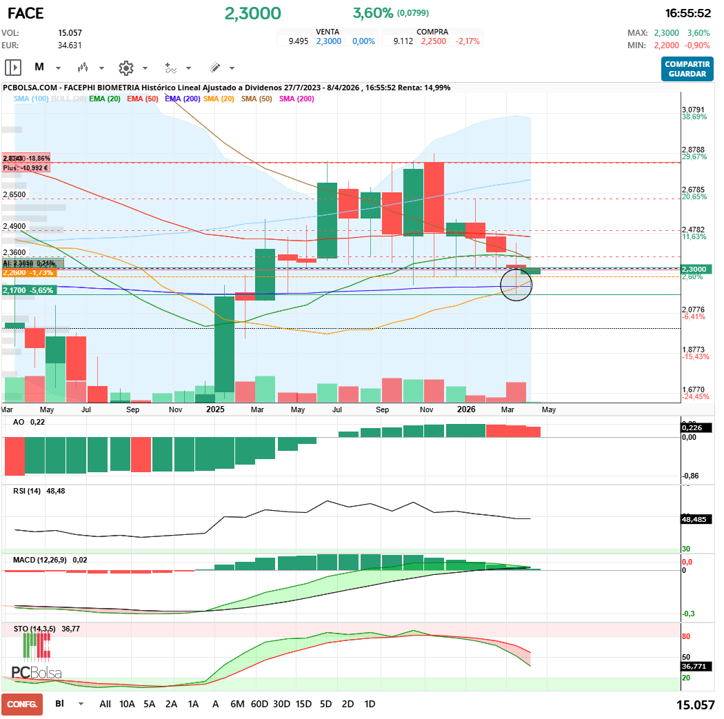 - (FACE) en Bolsa de Madrid -Del Día: miércoles, 8 de abril de 2026