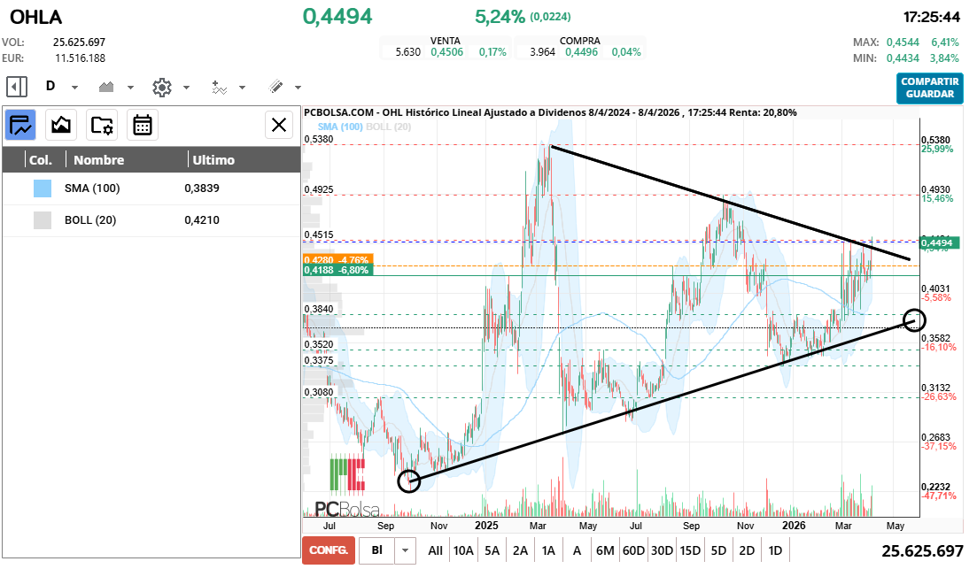- (OHLA) en Bolsa de Madrid -Del Día: miércoles, 8 de abril de 2026