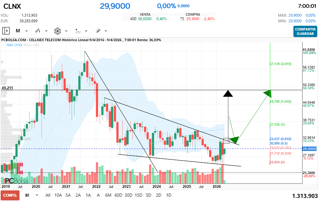- (CLNX) en Bolsa de Madrid -Del Día: jueves, 9 de abril de 2026
