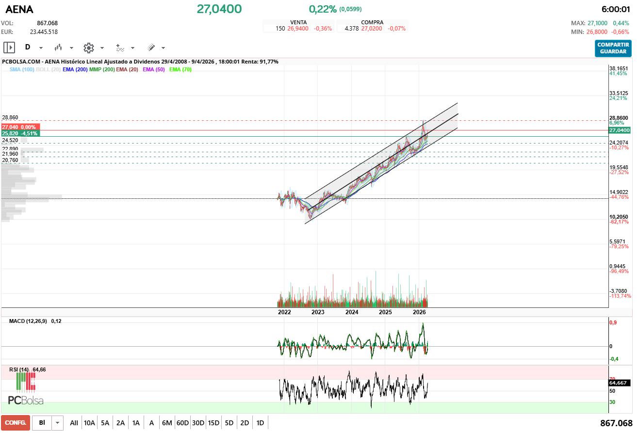 - (AENA) en Bolsa de Madrid -Del Día: jueves, 9 de abril de 2026