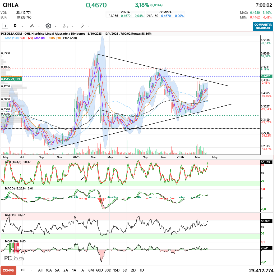 - (OHLA) en Bolsa de Madrid -Del Día: viernes, 10 de abril de 2026