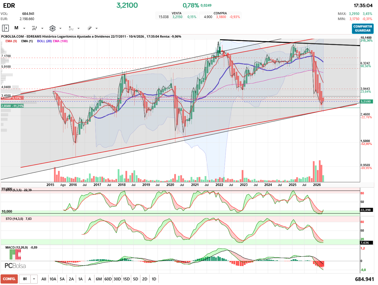 Estos gráficos se crean con la APLICACIÓN de PCBOLSA 3.0,pulsa aquí para entrar.