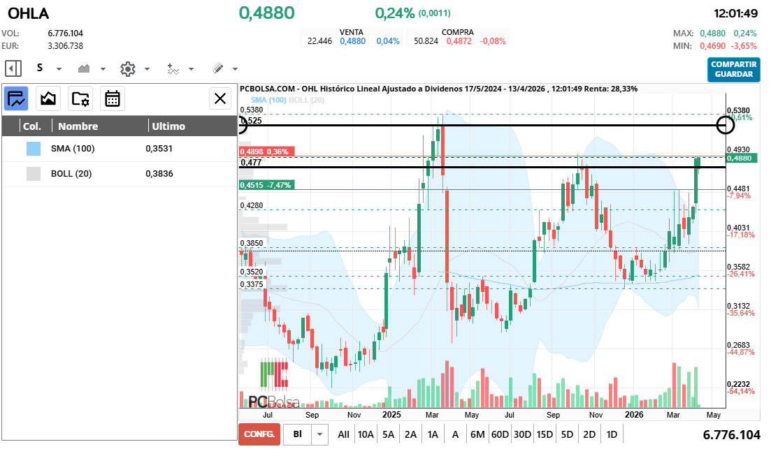 - (OHLA) en Bolsa de Madrid -Del Día: lunes, 13 de abril de 2026