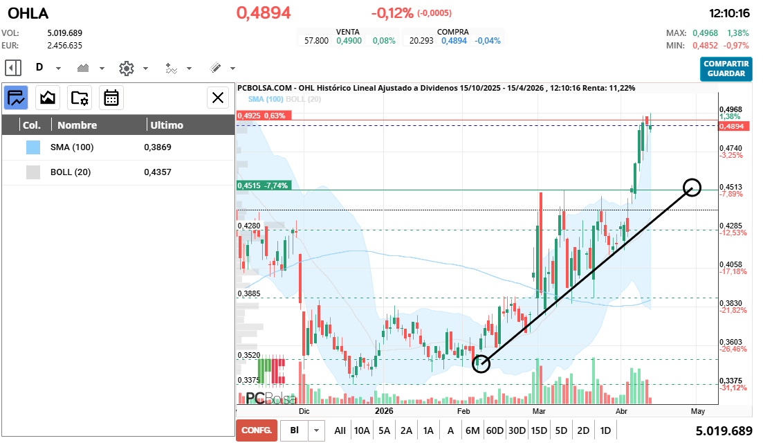 - (OHLA) en Bolsa de Madrid -Del Día: miércoles, 15 de abril de 2026
