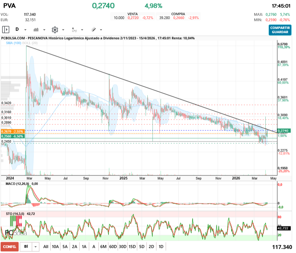 - (PVA) en Bolsa de Madrid -Del Día: miércoles, 15 de abril de 2026