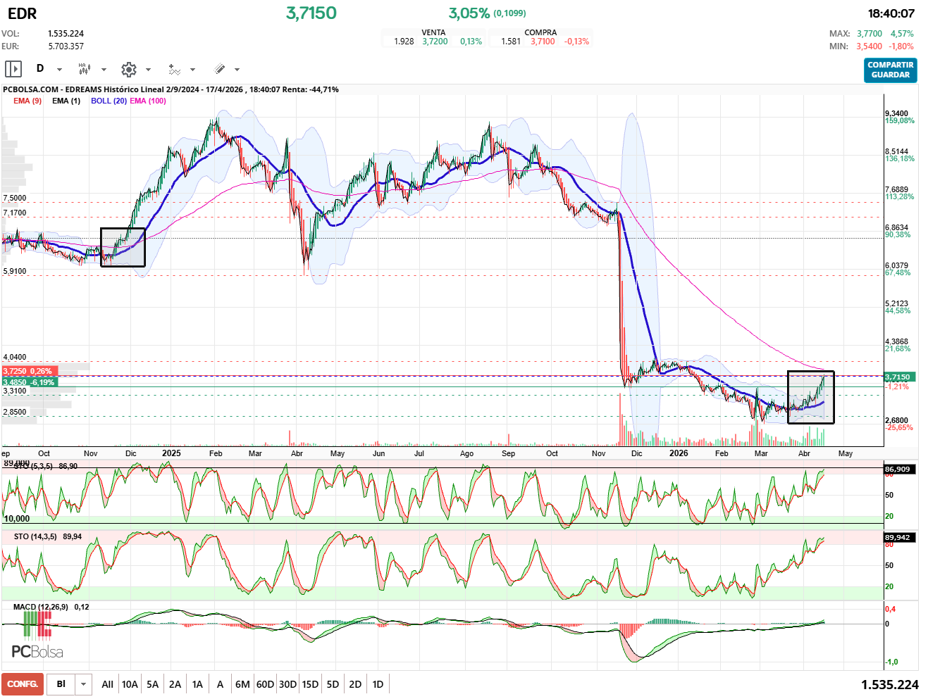 Estos gráficos se crean con la APLICACIÓN de PCBOLSA 3.0,pulsa aquí para entrar.