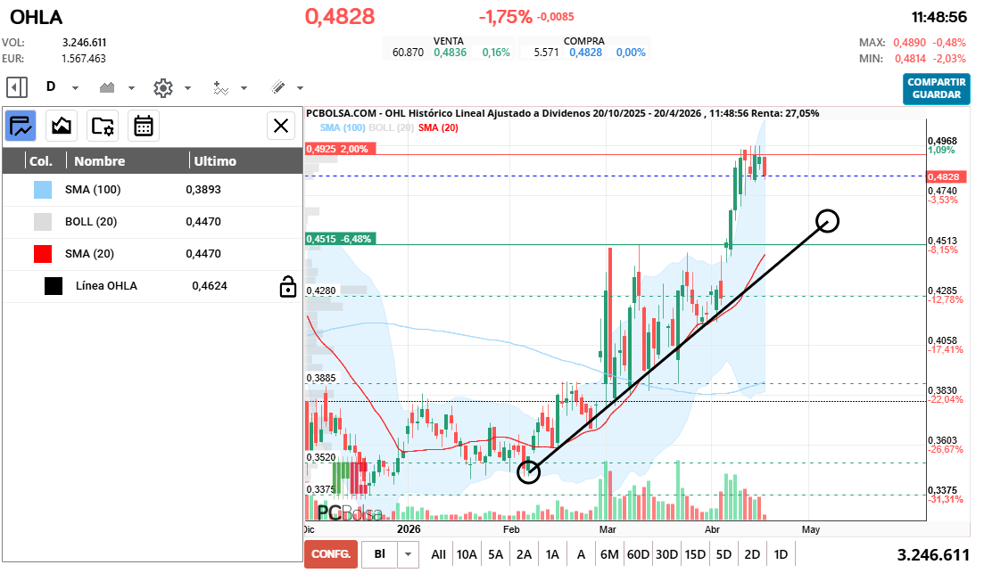- (OHLA) en Bolsa de Madrid -Del Día: lunes, 20 de abril de 2026