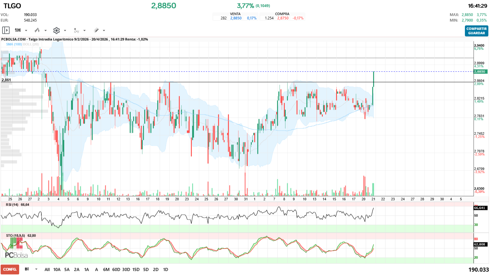 - (TLGO) en Bolsa de Madrid -Del Día: lunes, 20 de abril de 2026