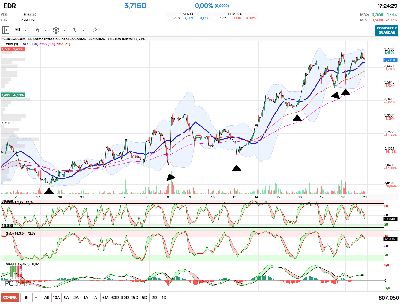 Estos gráficos se crean con la APLICACIÓN de PCBOLSA 3.0,pulsa aquí para entrar.