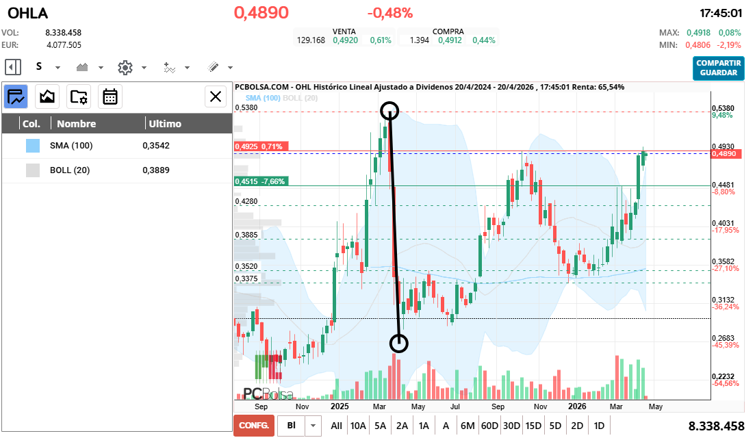 - (OHLA) en Bolsa de Madrid -Del Día: lunes, 20 de abril de 2026
