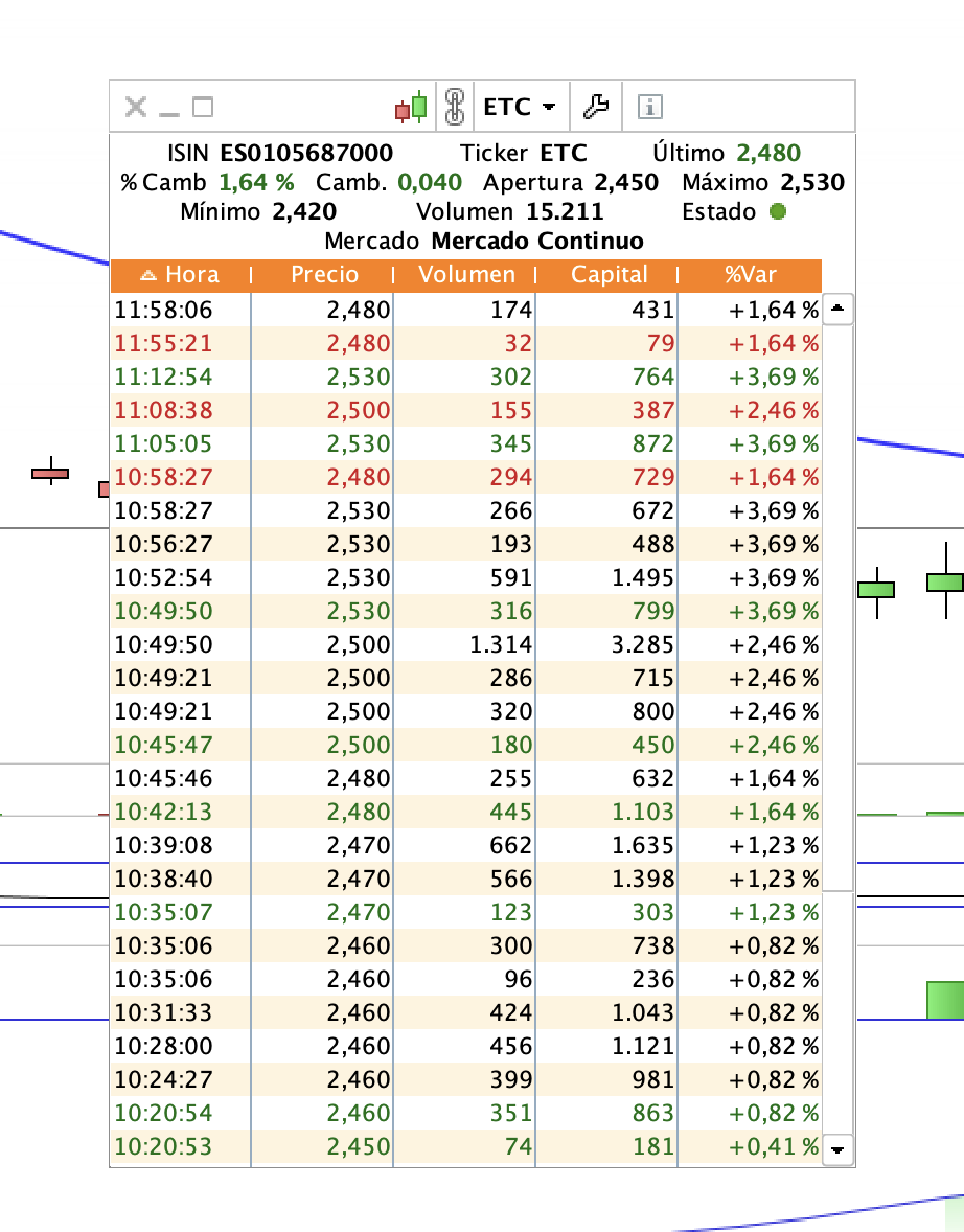 Redondeando pues 15.000 acciones para subir y limpiar la oferta peldaño a peldaño y 500 acciones para tirarla al piso inferior. Es evidente que tratan de mandar un mensaje de negatividad con respecto al valor pero están dejando muchas plumas por el camino porque ahora empieza a haber algo de volumen. No sé, Rick, igual tiene algo que ver con los intereses que han puesto en juego para la Junta. ;-)