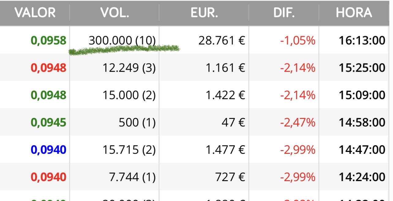 Siempre decimos lo mismo, luego llega a 0,13 y no vendemos, yo la mitad seguro que si, y está vez sí..........