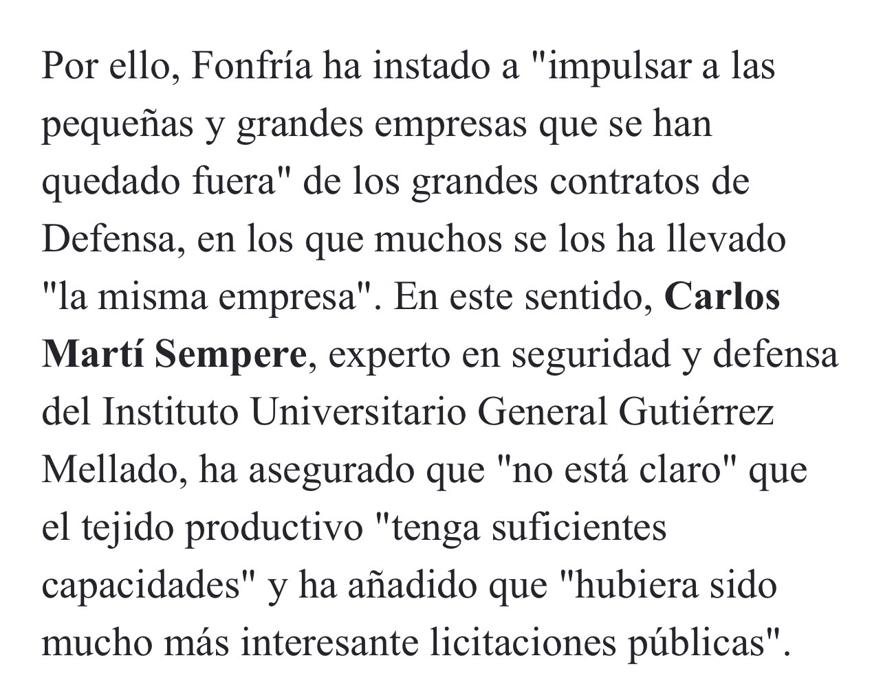 Precisamente ayudar y favorecer al tejido empresarial de defensa.