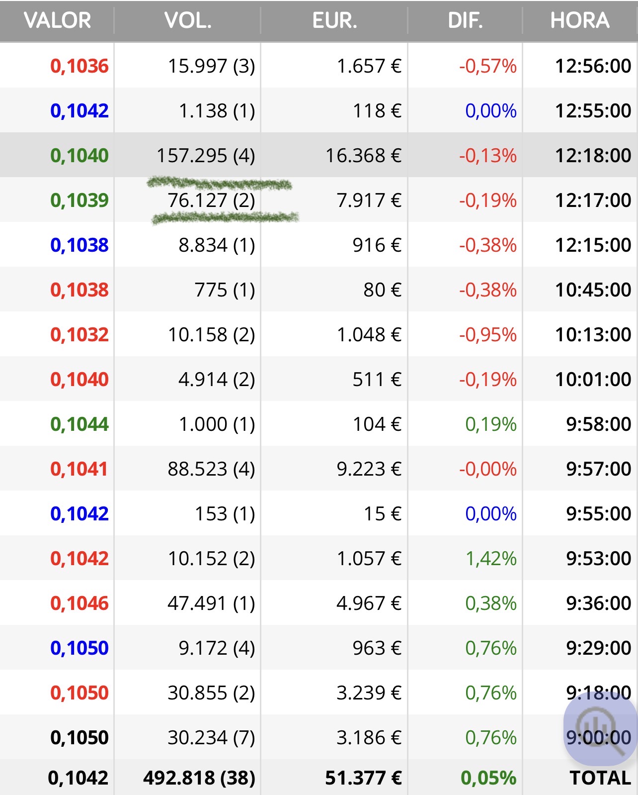 LLevo un ratillo mirando esta basurilla y tiene pinta de ir a tocar los 0,11, a ver si tengo razón :..........