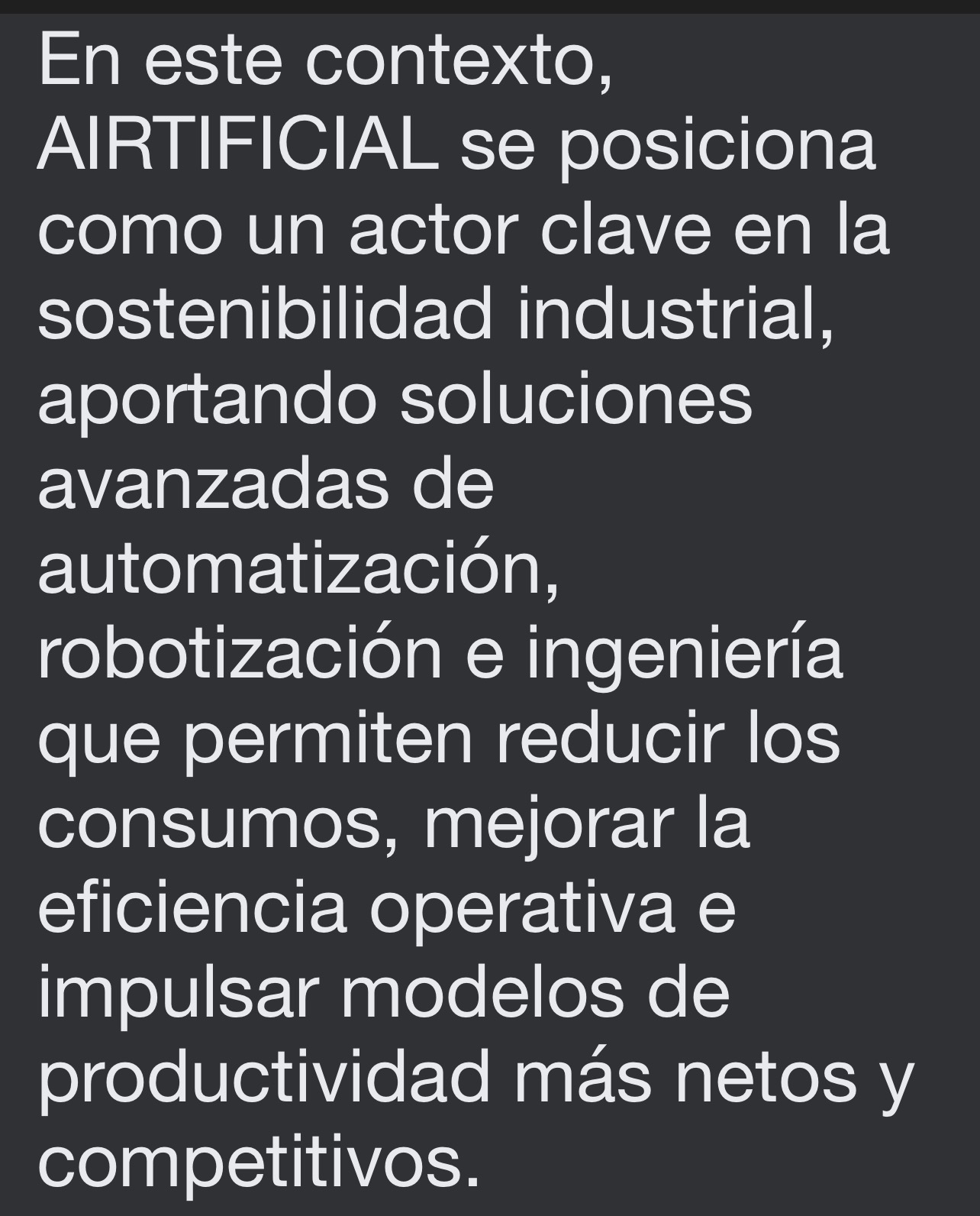 Bueno realmente ya tiene en marcha un proceso para mejorar en tema medioambiental pero he querido resaltar principalmente que Airtificial cumple con esos estándares y exigencias que requiere Indra y la UE y que podría también colaborar en su área de robótica por ejemplo cuando se lleguen a acuerdos…