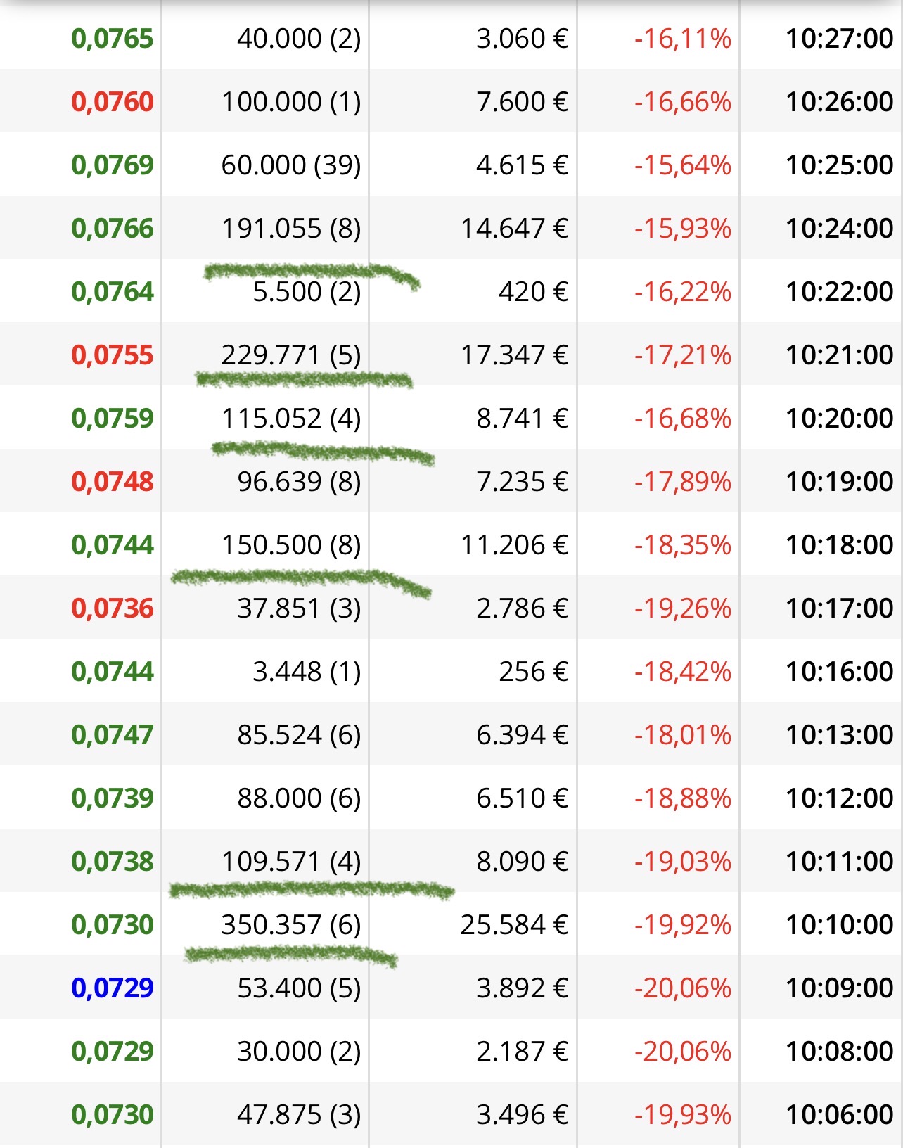 Después lo recuperó todo y algunos intras se salieron claro y cayó otra vez ya más tranquila para estabilizarse entre los 08 y los 085