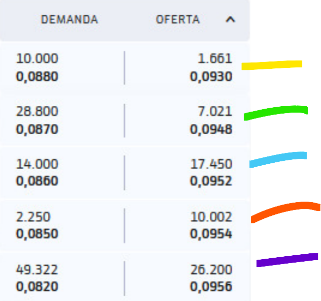 lo primero seria lanzar 100 k a mercado y otras 100 k en demanda en 0,0950 para recoger y sujetar