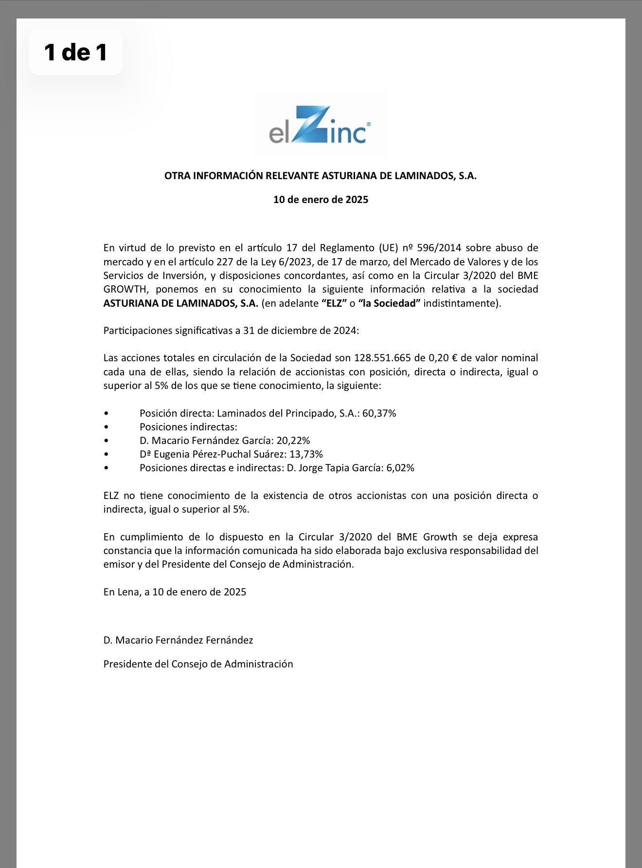 12/01/2026 09:22 ELZINC (ASTURIANA DE LAMINADOS) Otra Información Relevante: Participaciones signifi..........