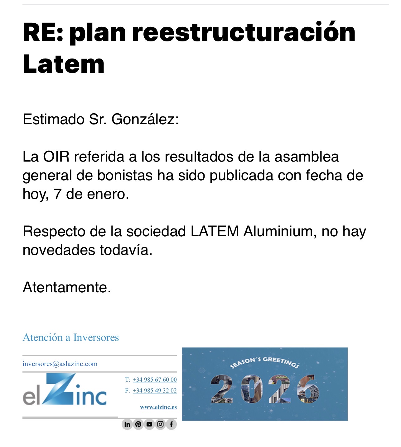 Existen, además, señales objetivas que apuntan a una alta probabilidad de aprobación y ejecución del plan de reestructuración de Latem. En primer lugar, la reciente ampliación de capital por importe de 1,4 millones de euros. Este movimiento difícilmente se explicaría en un escenario de liquidación o abandono del proyecto, y refleja compromiso financiero y voluntad de continuidad por parte de los socios. En segundo lugar, la publicación de dos ofertas de empleo relevantes —Business Development Manager y Product Manager— asociadas a Latem Aluminium. Estas posiciones no responden a una lógica defensiva, sino claramente expansiva y comercial, lo que sugiere que la compañía se está preparando para una fase de desarrollo operativo y crecimiento. Este tipo de decisiones suelen anticipar escenarios de normalización y ejecución del plan industrial
