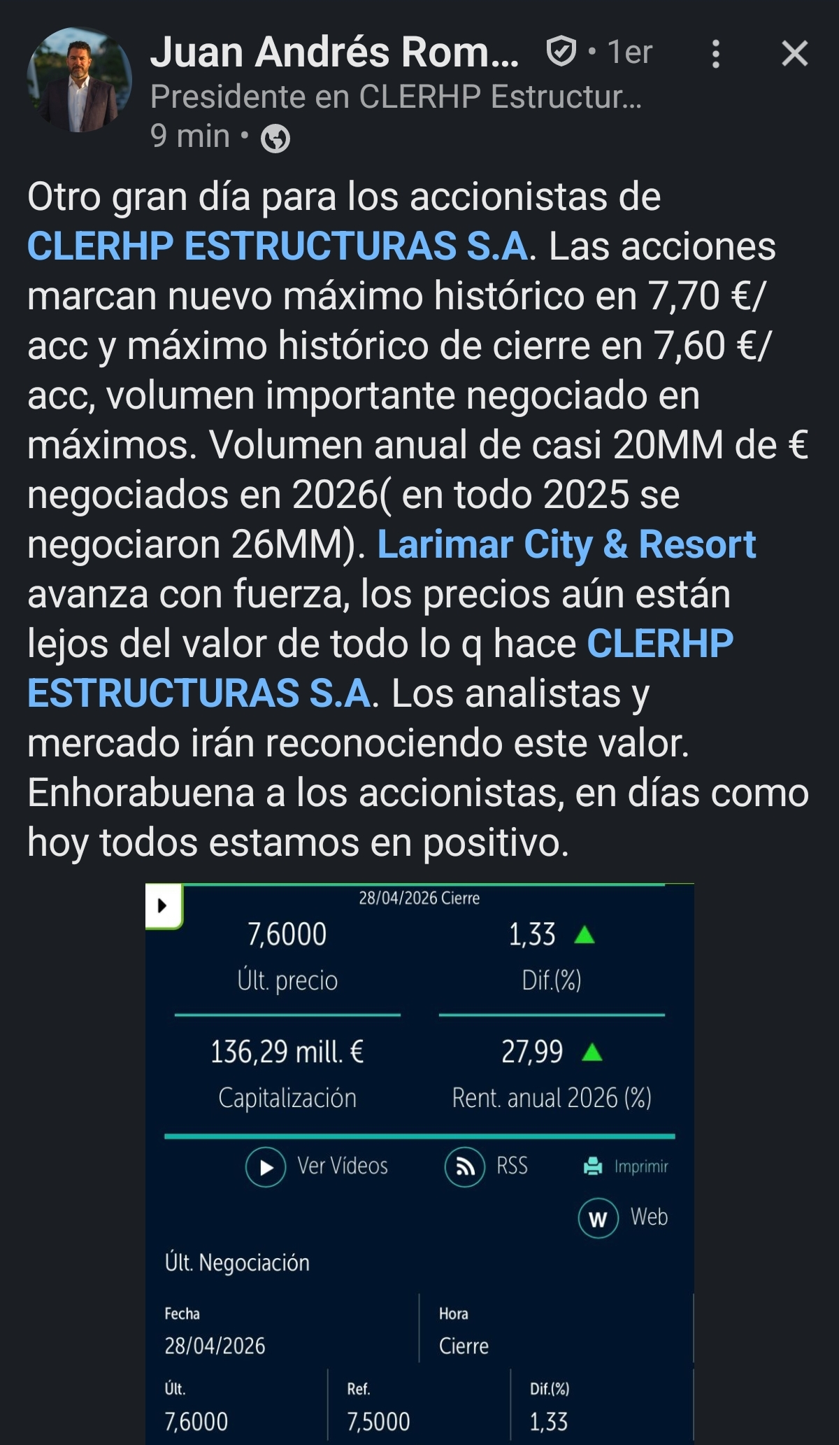 Se está poniendo muy bien. Cómo come lo que la ponen por encima. Y como constantemente acumulan demanda a 2 céntimos por debajo dando oportunidad de salida a quienes quieran sin afectar al precio manteniendo