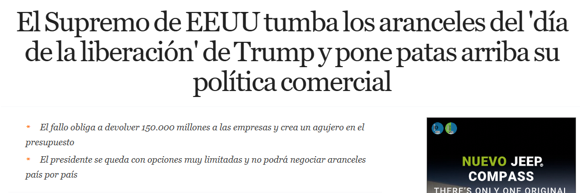 Parece que el Supremo de EEUU anula parte de los aranceles de Trump. Buen finde a todos.