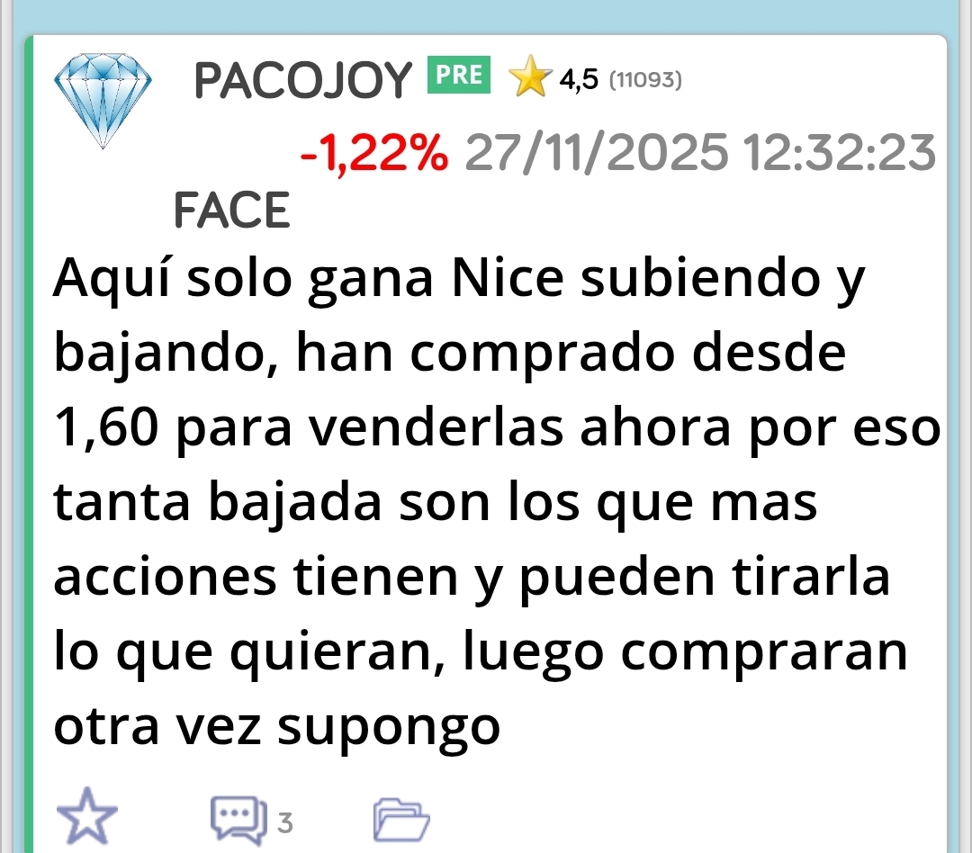 Del 20 al 28 de nov 7212 acc a un orecio mefio de 2.43 compró Nice