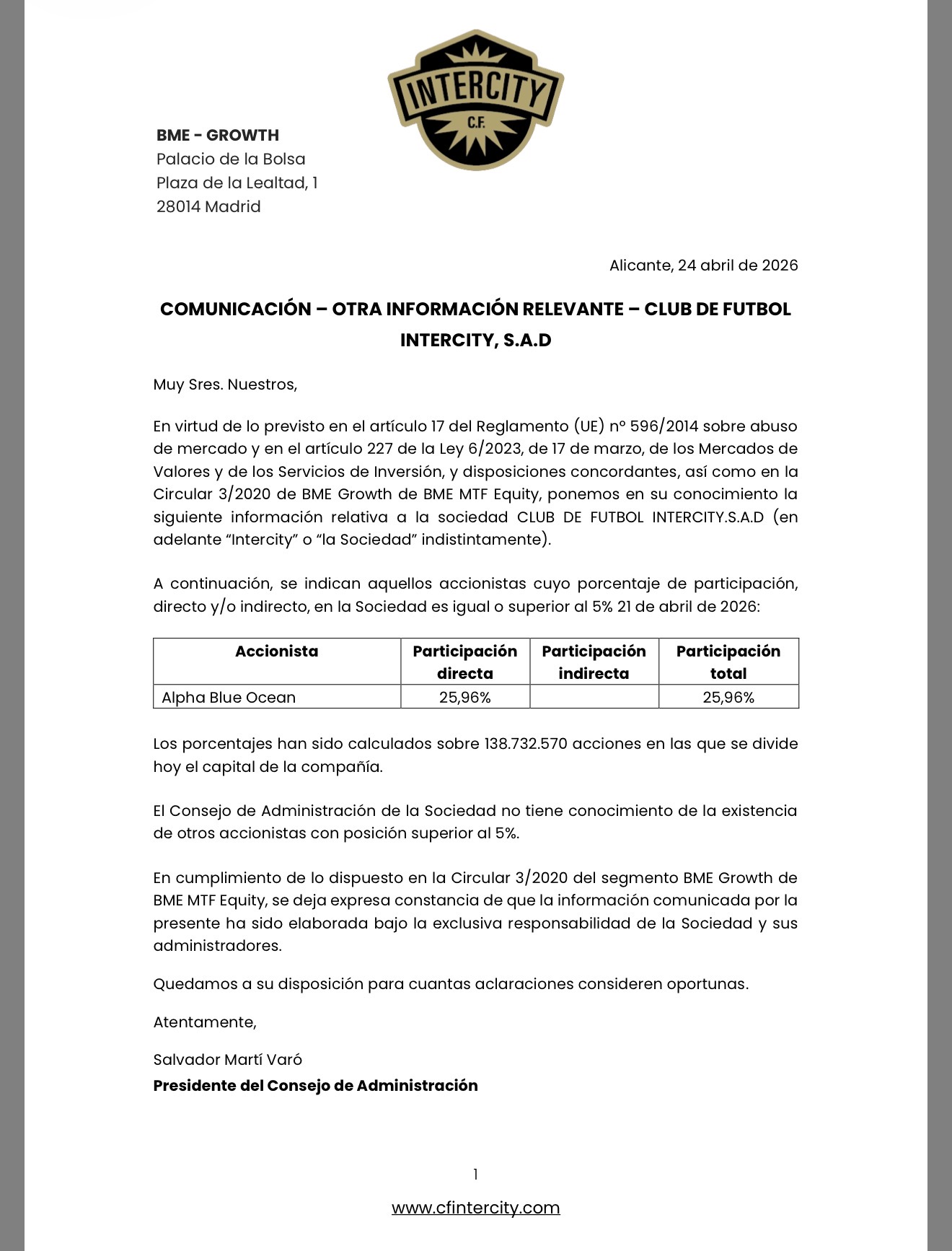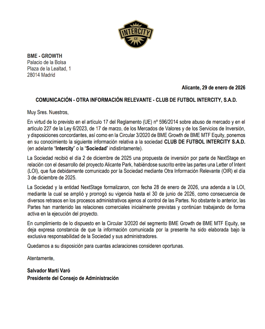 información Intercity CF