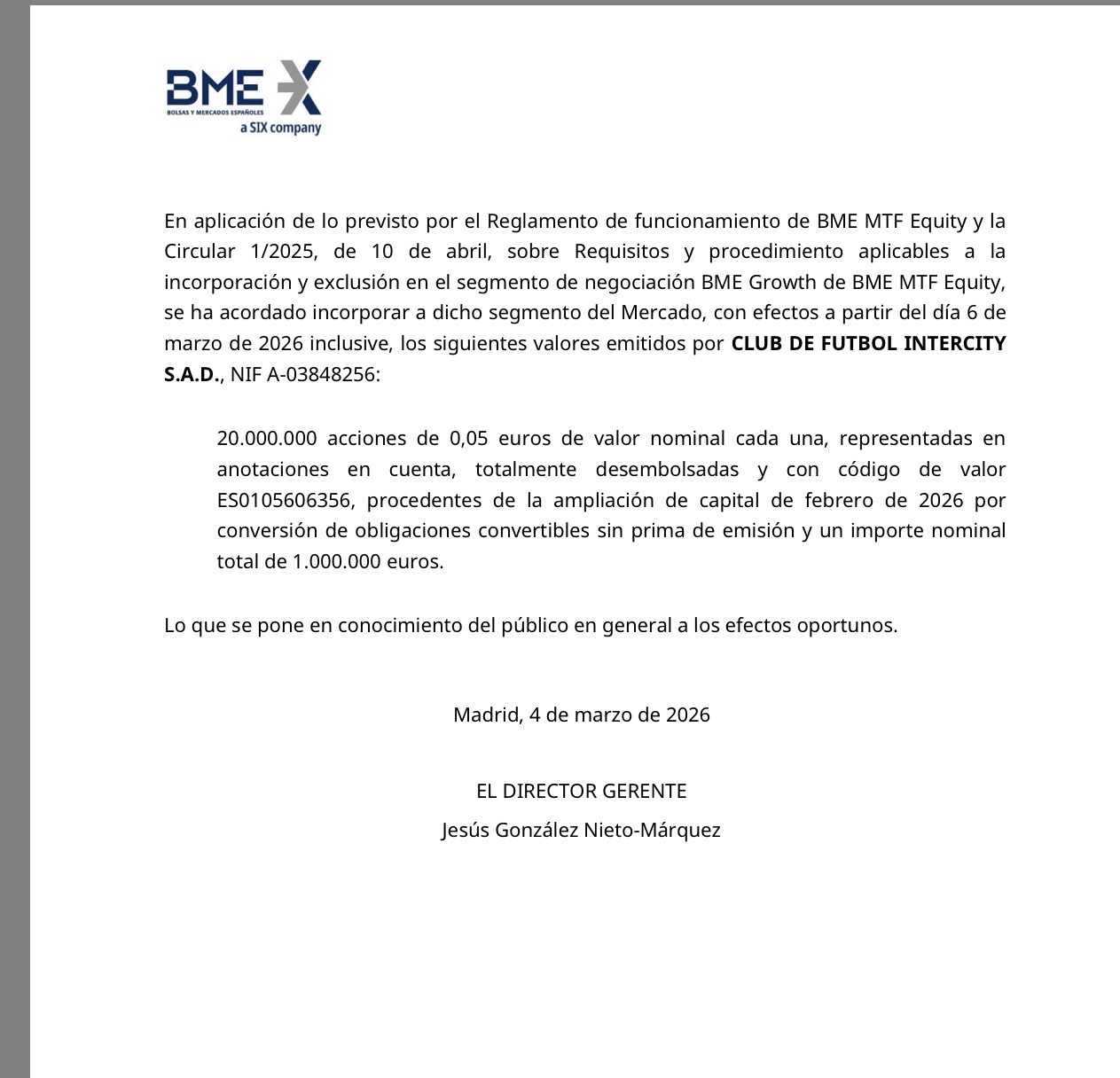 Y nueva conversión, anunciada hoy al cierre, de 20 millones de acciones a 0,05€ Pero, en serio, ..........