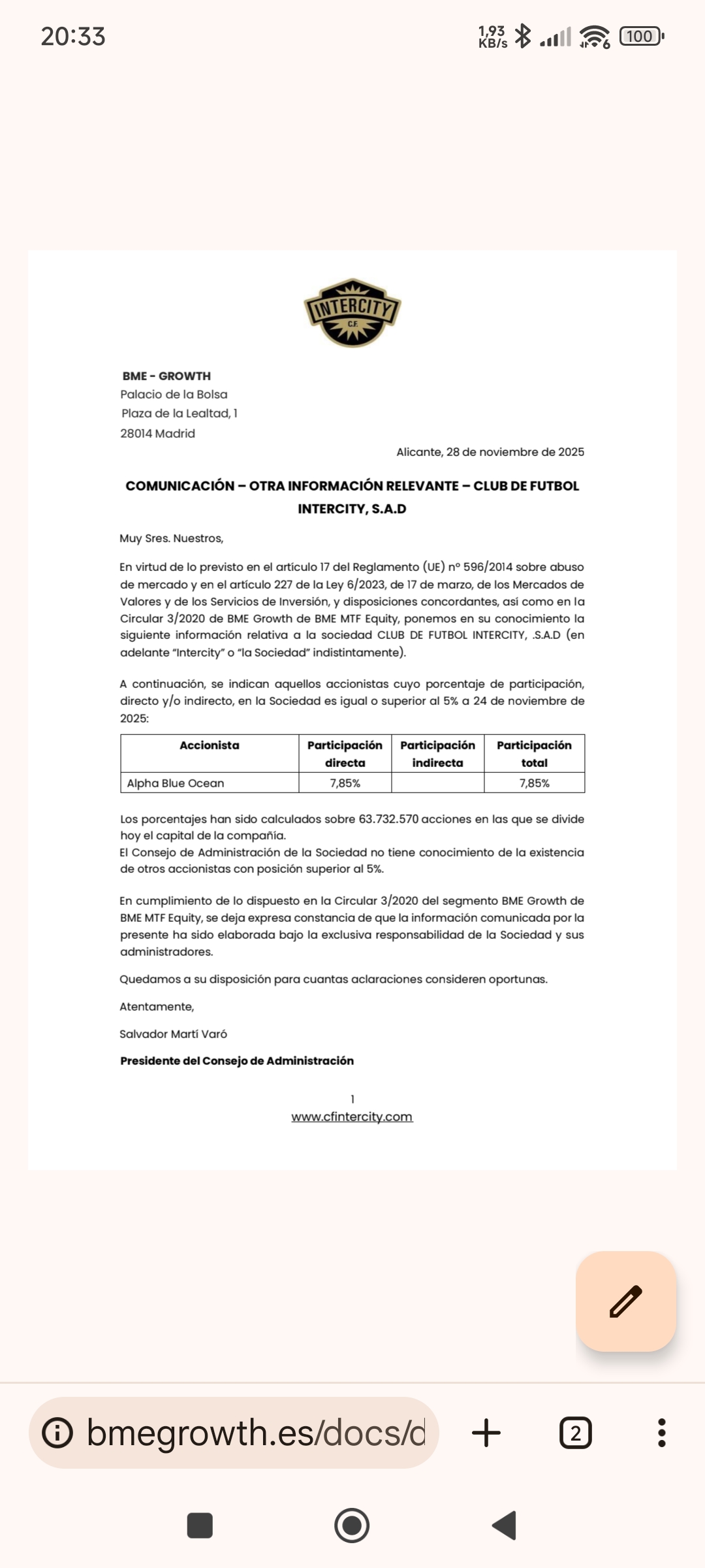 y si no me equivoco mañana tendria que haber ip de participación significativa de Abo porque entiendo el 3 habra vendido , tendría que haber hoy pero como es domingo . Si no salen , tengo la esperanza que en breve hay ip bueno , porque recordemos no hay ip de venta de las últimas compradas